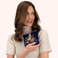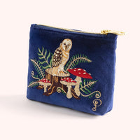 This beautifully embroidered velvet mini pouch from Powder offers the perfect gift this winter - cute, compact and practical! Woodland toadstools and foliage make the perfect setting for this regal barn owl in this glorious Autumnal scene.