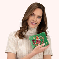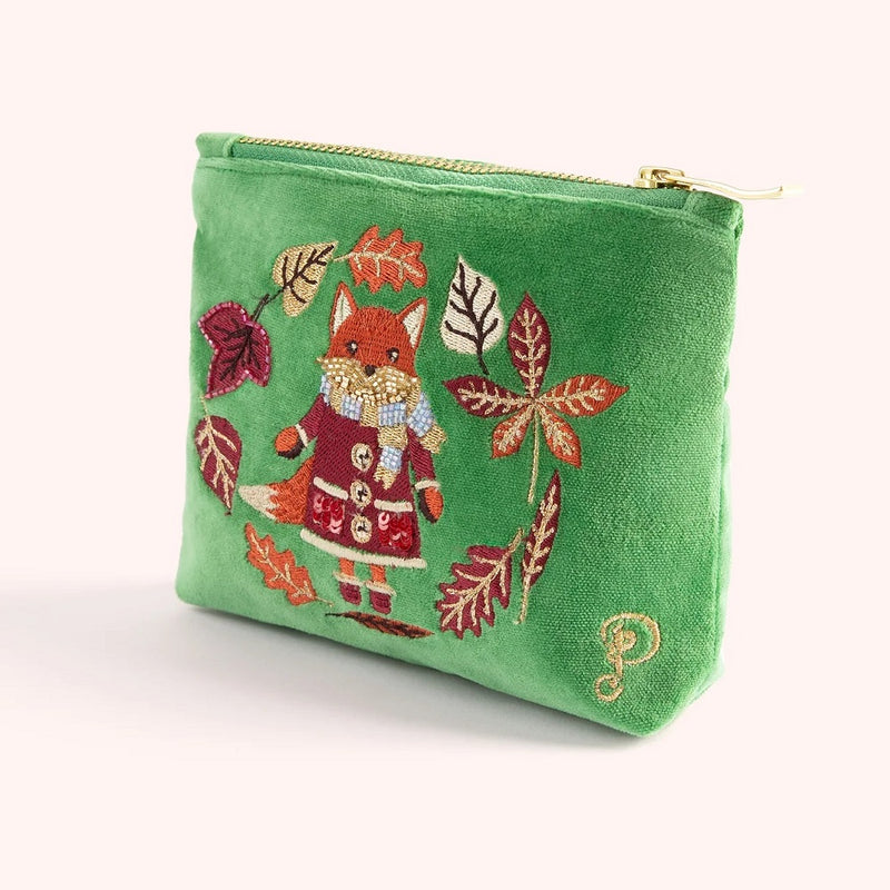 This beautifully embroidered velvet mini pouch from Powder offers the perfect gift this winter - cute, compact and practical! Rich emerald velvet is the backdrop for our cosy fox who shows us how it’s done when it comes to wrapping up this Winter!