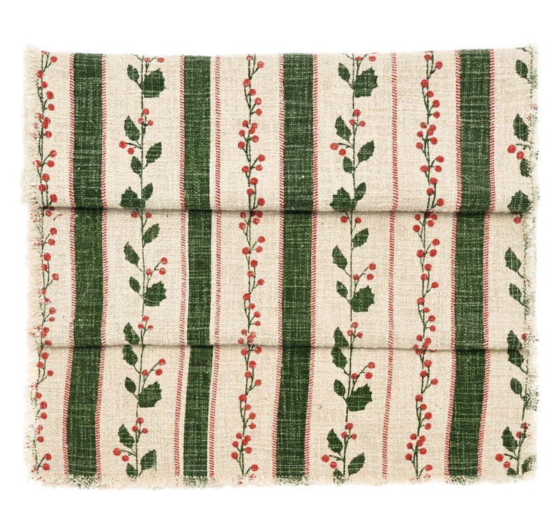 Elevate your festive dining experience with the Holly Berry Striped Table Runner in a rich green hue. This elegant piece combines classic holiday charm with refined style, featuring subtle holly berry accents that bring warmth and sophistication to your table setting. Ideal for creating a polished and inviting atmosphere during special occasions or seasonal gatherings.