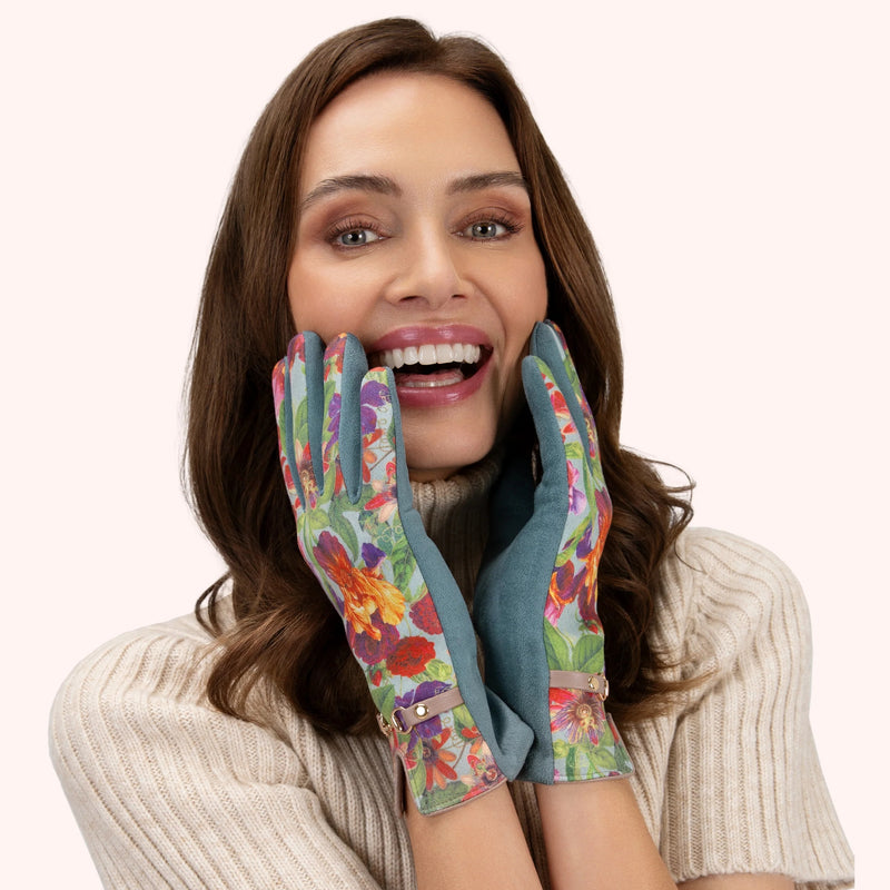 Experience the elegance of autumn with the Faux Suede Kylie Gloves by Powder. Crafted from soft faux suede, these gloves offer a refined texture complemented by a delicate floral design, perfect for adding a touch of sophistication to your seasonal wardrobe while keeping your hands comfortably warm.