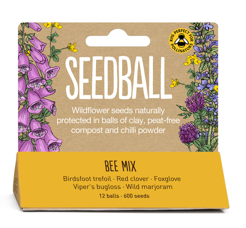 Each seed ball contains approximately 30 wildflower seeds from a mix of Birdsfoot Trefoil, Foxglove, Red Clover, Viper's Bugloss and Wild Marjoram, all recommended as bee friendly plants by the Bumblebee Conservation Trust. We've also added a sprinkling of pollinator-friendly annuals Chamomile, Cornflower, Corn Marigold and night flowering Catchfly.