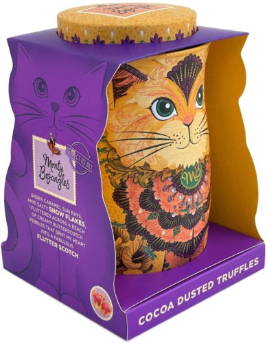 The Monty Bojangles luxury butterscotch and sea salt truffles are coated with a generous dusting of exquisite bitter-sweet cocoa powder, individually wrapped and certain to delight any chocoholic.