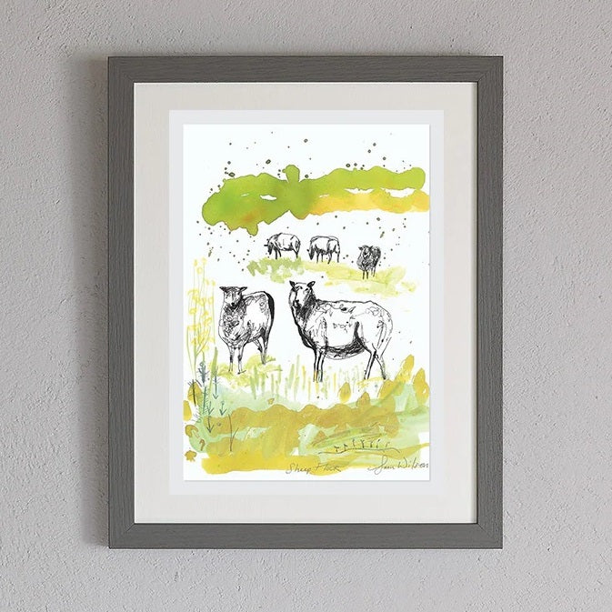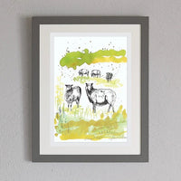 Printed on 280gsm fine art, acid-free paper, using fully archival inks, this high-quality print of "Sheep Flock" is signed by the artist, Sam Wilson.