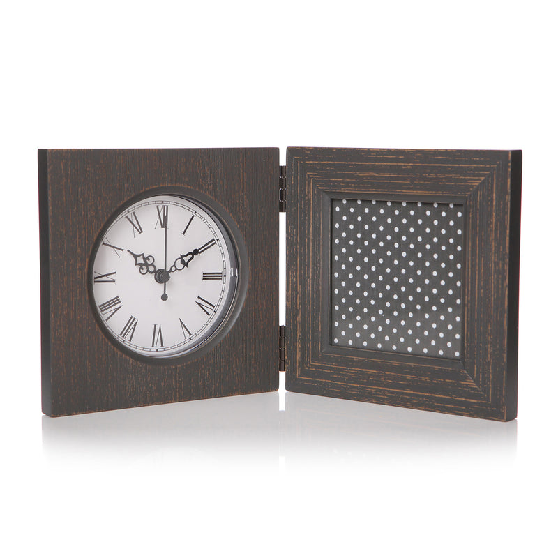 This stylish, wooden double frame with clock has a distressed finish, giving it a lovely shabby chic appearance. With easy access to the add your photos, it is perfect for showcasing your favourite photos, and makes a lovely gift.