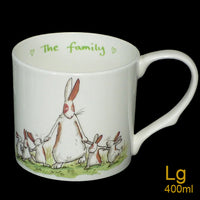 Depicting a family of hares holding hands, this charming mug is presented in a stylish box perfect for gifting.